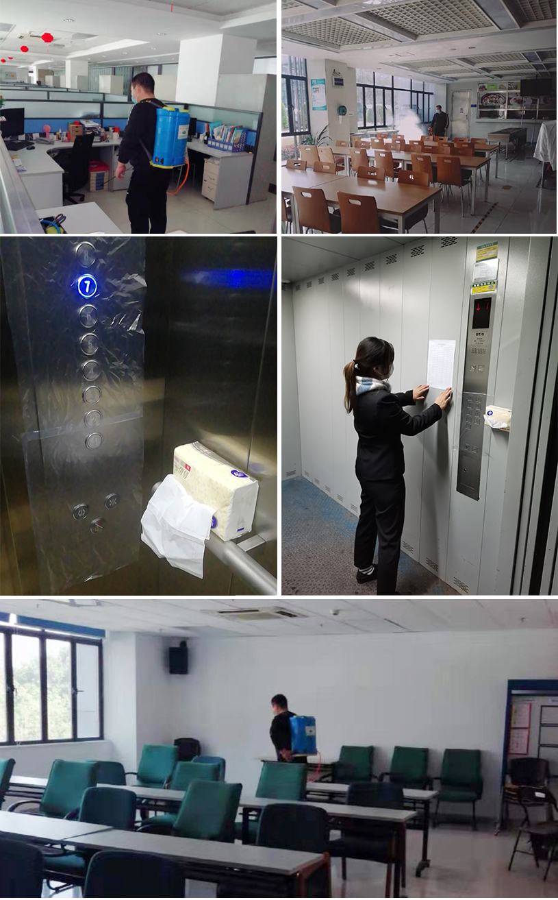 航新科技緊抓防疫工作不放松,對公司所有樓層的門廳、門把手、電梯廂、快遞箱、衛(wèi)生間、會議室等每日定期進(jìn)行消毒滅菌工作。