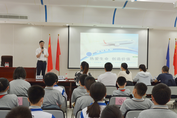 航新科技總裁胡琨熱烈歡迎了廣東華僑中學(xué)老師及初中部航模社團(tuán)、機(jī)器人社團(tuán)一行的到來,為同學(xué)們進(jìn)行了保密安全培訓(xùn),并作了題為“熱愛生命,創(chuàng)造價(jià)值”的報(bào)告,著重介紹了飛機(jī)方面的相關(guān)科普知識(shí)—從飛機(jī)的維修到機(jī)上神秘的“黑匣子”,以及國內(nèi)相關(guān)航空院校的介紹。邀請同學(xué)們參觀了公司維修生產(chǎn)車間,近距離感受航空相關(guān)設(shè)備。同學(xué)們對(duì)飛機(jī)表示出了極大的興趣,在交流討論和參觀環(huán)節(jié),紛紛踴躍發(fā)言,提出各種奇思妙想和種種疑問,胡琨總裁一一進(jìn)行了解答。