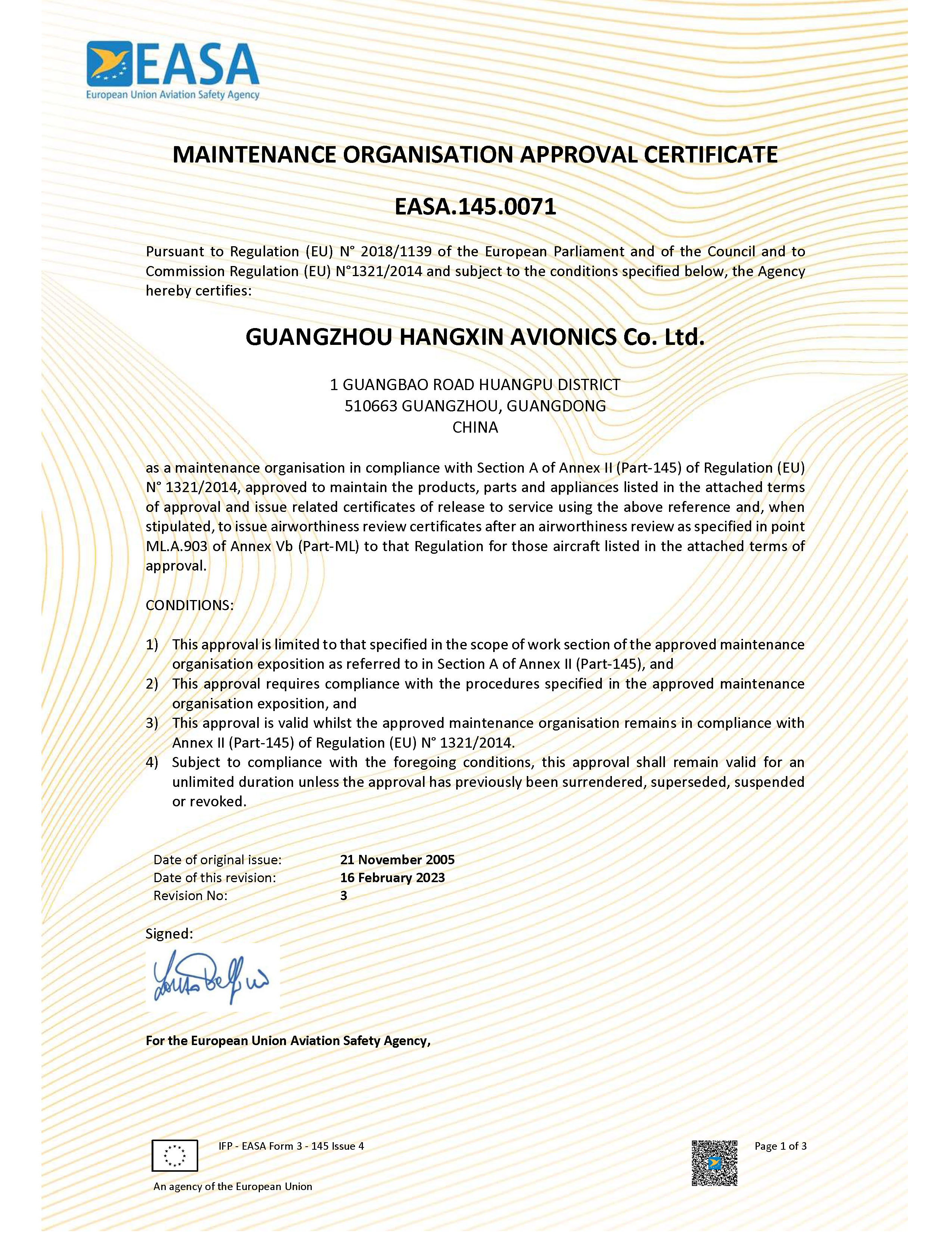 EASA維修許可證(廣州航新)